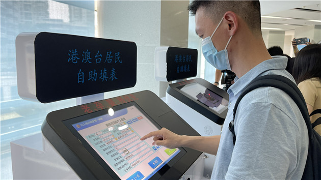 「這是全國首台港澳台居民自助填表機,申請人可以通過掃描其回鄉證自助填表,耗時僅3~5分鐘。」廈門市出入境工作人員王語向記者介紹。