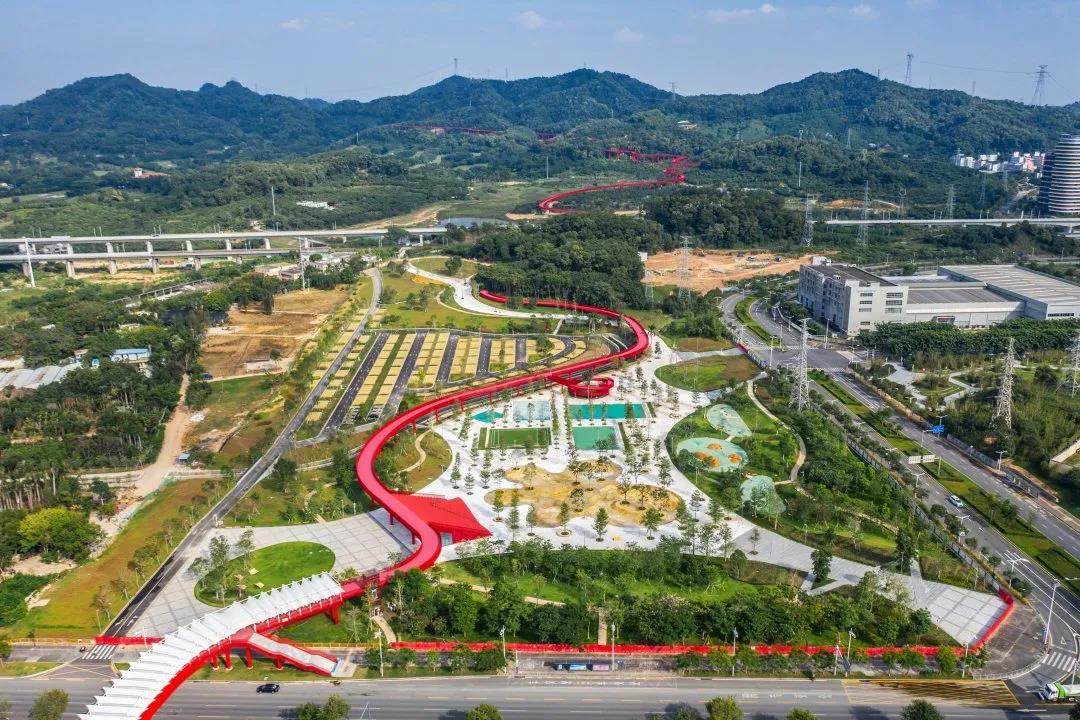 The newly opened Hongqiao Park, also known as Red Bridge Park, has a name deriving from the 4-kilometer red bridge built in Guangming District, Shenzhen, and is ranked sixth among the 10 most visited places in China last Chinese New Year, according to a list published in February by Douyin, the Chinese version of TikTok. In fact, the park, reputed as 「the most beautiful red ribbon」, won the Best Landscape Design Award at the 2020 World Architecture Festival China (2020 WAFChina).