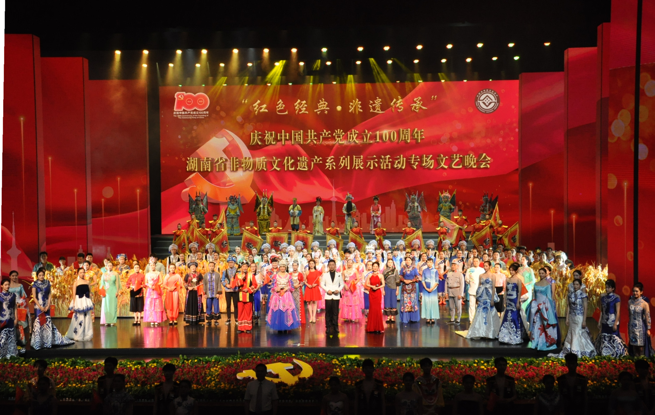 炎陵蘇區歌謠、客家山歌、桑植民歌、苗族鼓舞、新化山歌、嗚哇山歌、嘉禾民歌、平江民歌、岳北山歌、韶山山歌等省級以上代表性非遺項目共計21個非遺節目參演。用傳承非遺的獨特方式表達百年征程、夢圓小康的喜悅,向中國共產黨成立100周年獻禮。