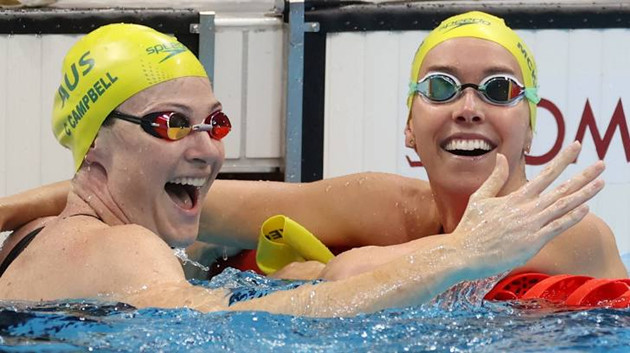 女子100米自由泳決賽中,澳洲選手艾瑪·麥基翁以刷新奧運會紀錄的成績51秒96奪冠;中國香港選手何詩蓓繼斬獲200米自由泳金牌創造歷史後,再奪一枚銀牌,52秒27的成績刷新了女子100自亞洲紀錄;另一位澳洲選手凱特·坎貝爾收獲銅牌,成績為52秒52。(圖源:路透社)