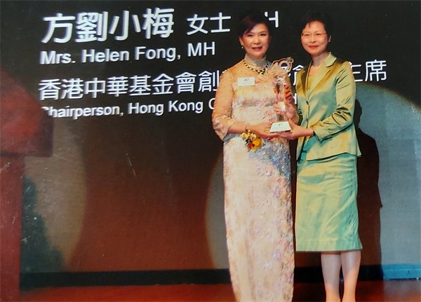 在慈善團體頒獎典禮上,香港中華基金會主席方劉小梅獲頒獎座,並由當時任政務司司長的林鄭月娥頒發,以表揚過往多年對香港及內地作出的貢獻。