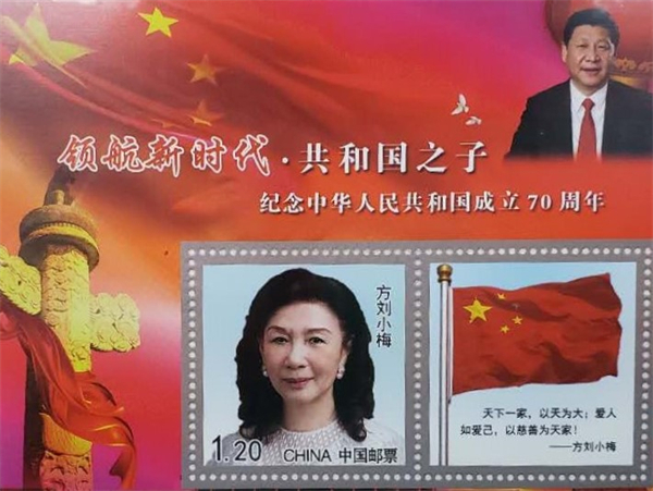 方劉小梅熱心公益,被授予「中國公益楷模」,更被錄入「領航新時代‧共和國之子 —— 慶祝中華人民共和國成立70周年紀念郵冊」,紀錄其德政。