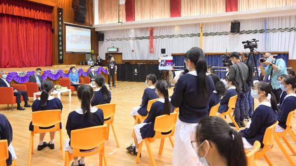 林鄭月娥其後到學校禮堂與學生進行座談,聽取他們對新一份《施政報告》的意見。該校約60名高中學生出席座談,另外約1 000名來自東華三院屬下17間學校的學生亦透過視像會議參與。在歷時約一小時的座談中,共有十多名學生發言,他們關注的議題包括教育、青年發展和環保等政策範疇;學生亦就歷史建築保育和藝術文化發展等提出意見。(記者馮煒強)