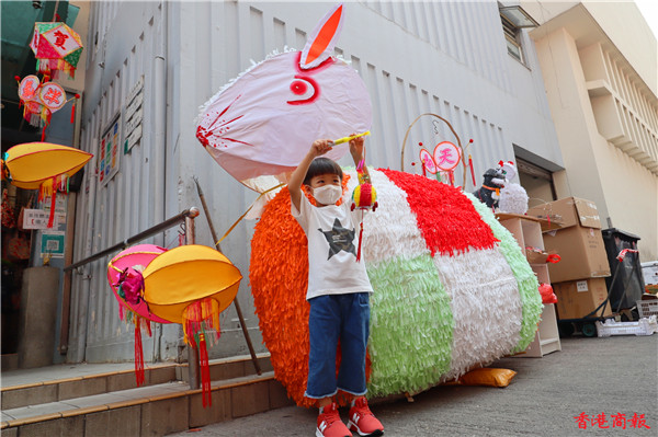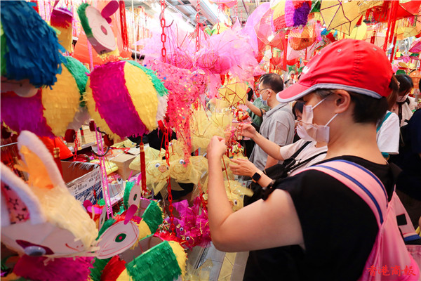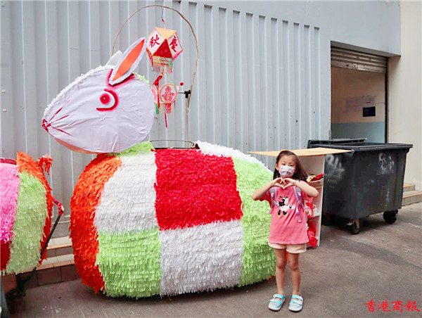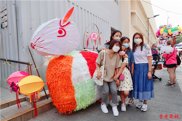 一年容易又中秋,不少市民忙於購買月餅等賀節食品,而小朋友當然少不了買心愛的燈籠應節。位於元朗大橋街市一年一度的「燈籠街」是不少市民購買傳統人手扎作燈籠的首選之地,這裏有大大小小的手扎燈籠,有傳統的如玉兔、楊桃等,也有新款的如飛機、恐龍等,每年臨近中秋節都會人山人海。今年這裏出現了一個新景點,就是在街市門外出現了一隻比人還高的紙扎巨兔,瞬即成為大人和小朋友打卡的熱點。