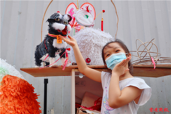 扎作這隻巨兔的冒卓祺師傅從事扎作業30年,也是第一次扎作身高達兩米、長兩米二的巨兔。他覺得臨近中秋,社會氣氛沉寂,疫情下很多中秋慶祝活動都取消了,於是他扎作巨兔,希望與眾同樂,大家可以開開心心過中秋。(圖片:馮瀚文、文字: 鄭玉君)