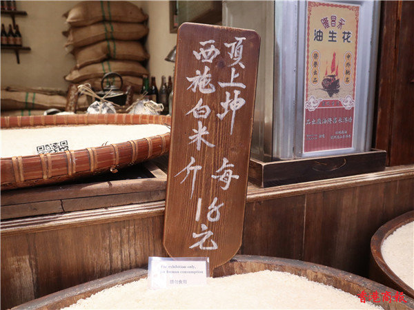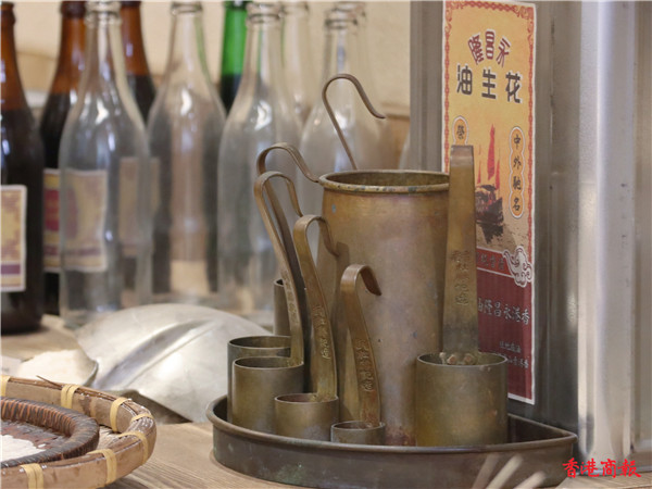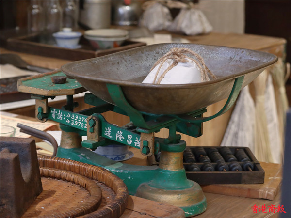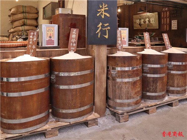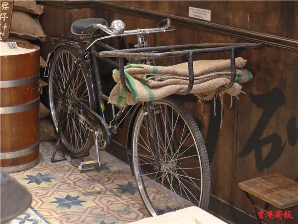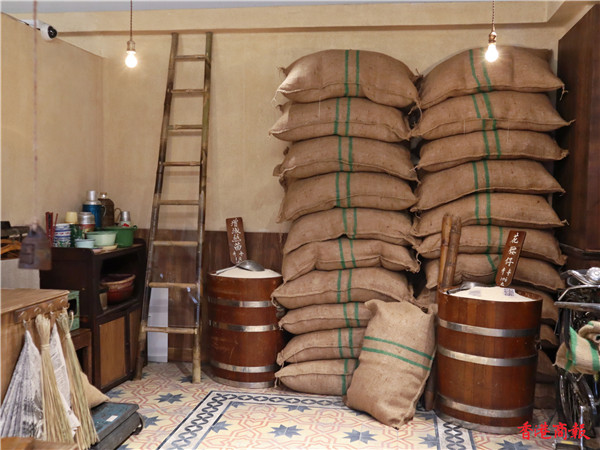 還有舊米行攤檔外插着木牌標明產地同用花碼字寫你價錢的大米缸、帳簿、算盤、米勺、天秤、火水爐、牆上的掛曆、古老舊鐘、裝米的麻包袋、運送米的單車等工具都是老古董,細說香港昔日米行故事,也讓市民一睹香港舊有文化的風采。(攝影 馮瀚文)