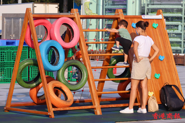 此外,在長廊一角有個小水池,配合環境同陽光,就可以影到「天空之鏡」,成為最近熱門打卡點。另外一個角落是一個寵物公園,供寵物與其主人們一起玩耍活動。(馮瀚文攝)