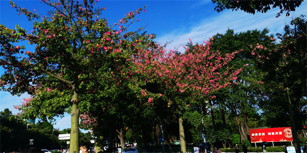 路邊的美麗異木棉花、簕杜鵑花更加鮮艷爛漫;田間的農作物滿目蔥蘢……禺山大地美麗如畫。