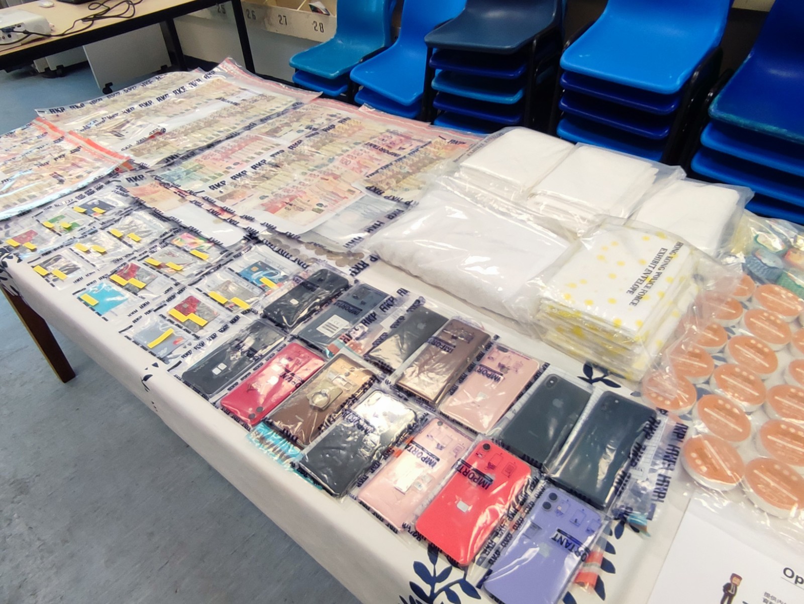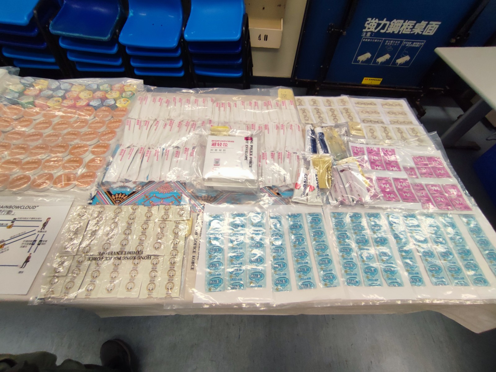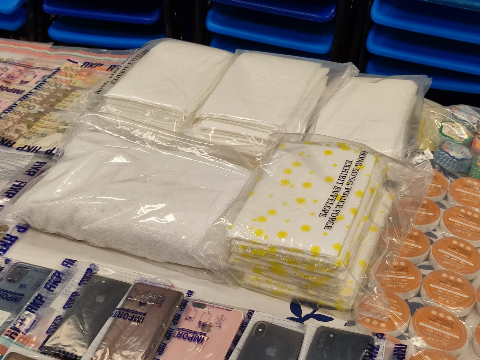 警方在行動中檢獲的證物。