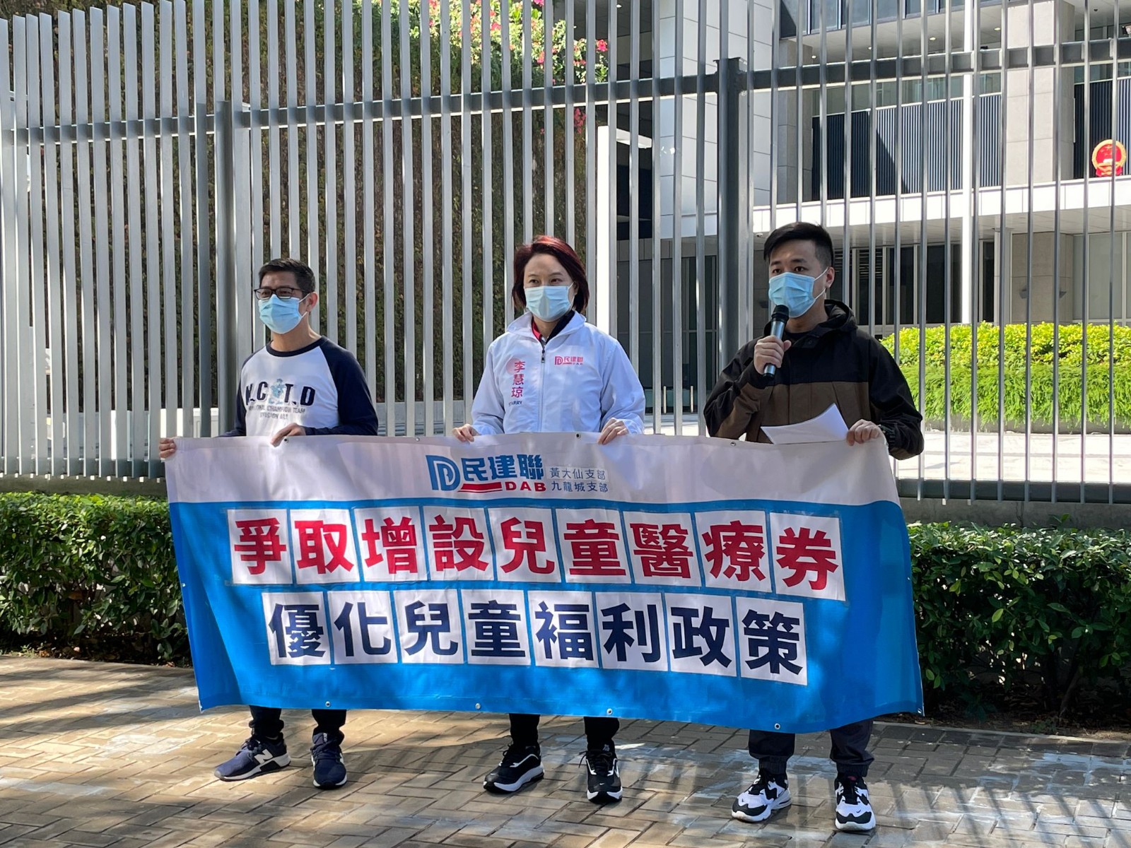 民建聯主席李慧琼、黃大仙區社區幹事袁國強及潘卓斌,今日(20日)到政府總部請願,促請優化現存兒童福利政策,保障兒童權益。