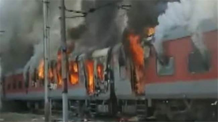 據印媒新德里電視台報道,今日(26日)印度中央邦一輛特快列車在行駛途中起火,大火從車廂竄出,目前起火原因不明。