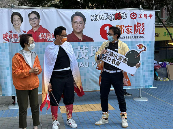 另一方面,工聯會九龍東候選人鄧家彪今日亦在區內舉行選舉活動,鄧家彪向街坊表示九龍東交通問題嚴重迫切,除了全力爭取政府盡快落實「東九龍過山線」,還提出了六大具體建議,以改善九龍東交通問題。當中包括1:擴闊新清水灣道,解決彩雲交通問題;2:增設無障礙設施連接牛池灣;3:增加往聯合醫院的小巴及巴士路線;4:研究重設九龍灣車站,改善工業區上落貨泊車位不足及道路擠塞問題;5:加快興建T2主幹道分流;6:擴闊將軍澳道,解決繁忙時間藍田交通擠塞問題。