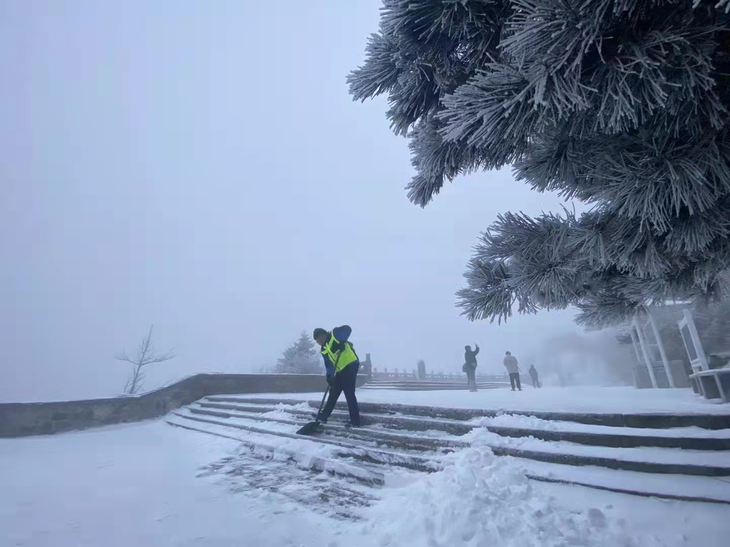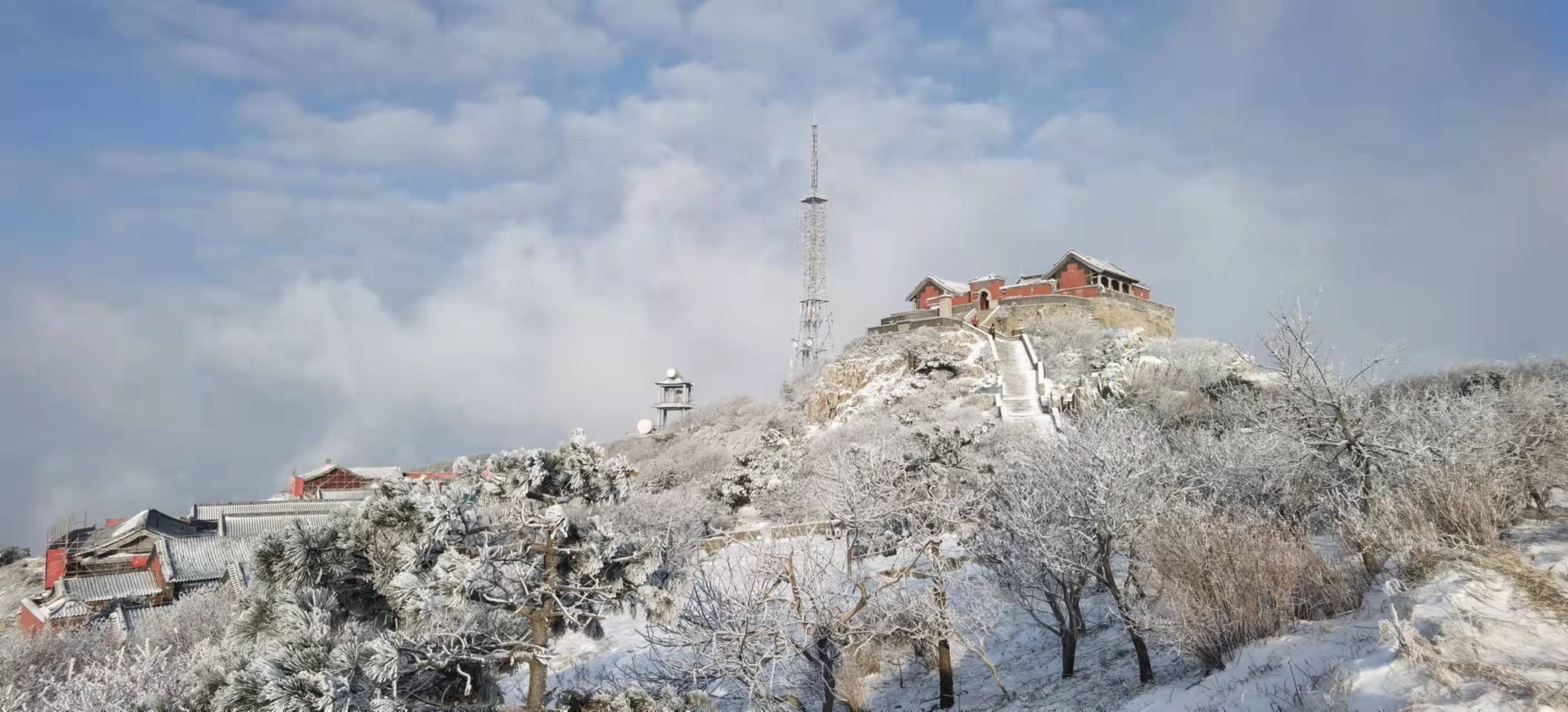 11月29日晚,泰山之巔迎來今冬第二場降雪。雪後初晴陽光明媚,皚皚白雪浮現在雲端,山頂霧凇似霜非霜,似冰非冰,迎風怒放,千姿百態。岩石化作了璞玉,枯枝化作了珊瑚,灌木綻開了花朵,萬物驟然間凝聚成冰的世界。置身其間如癡如醉,盡享泰山冬韻魅力。