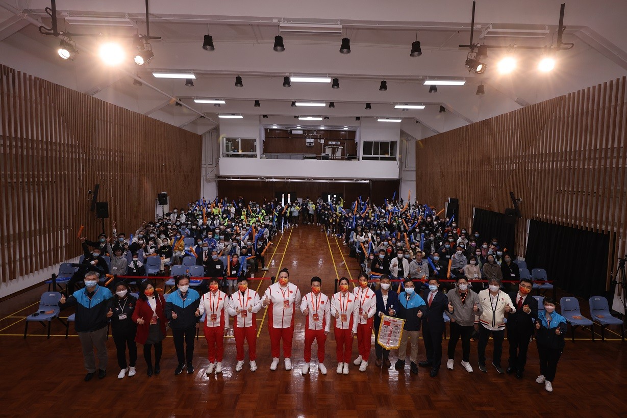活動門外還有數以百計搶不到票的學生在冷風中等待,有些更是穿着中學校服,為的只是一睹運動員上落車進出會場的瞬間。由於運動員要遵守嚴格的防疫措施,所以警方安排了警員維持秩序,防止市民衝出接近,小粉絲們只能對一閃即過的運動員隔空高喊我愛你」兼用手機狂拍。(記者 李銘欣 除標註外,本文圖片均來源於香港政府網)