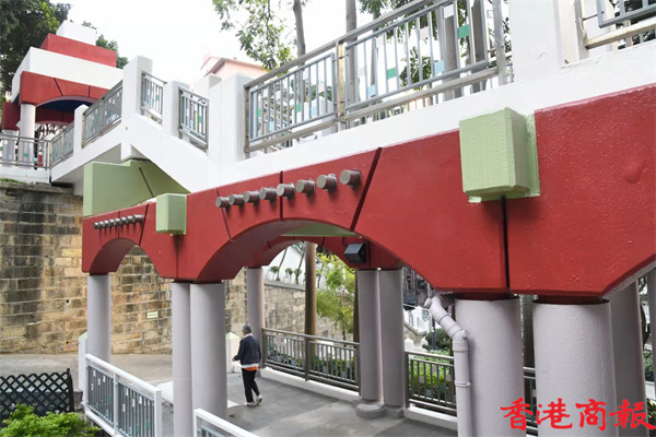 中上環商業區的中半山地段之上,有一座紅白相間的城堡靜靜佇立在一隅,說的是建於1990年的上環堅巷花園。花園共有三層,外形猶如積木般的城堡聳立在公園中央,四通八達的樓梯與步道向外延伸,恍如一個奇幻國度。當中狀似「扭計骰」的公廁設計相當破格,讓人不禁佩服建築師的巧思。