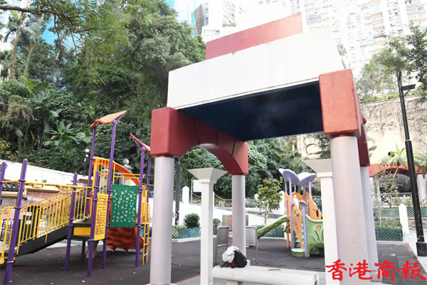 花園前身為俗稱「幫辦樓」的督察宿舍,後曾改作香港大學法律系創系系址,最後在1970年代被拆卸,及後改建成如今的小花園。花園設有噴水池、樓梯、空中步道、遊樂場等設施。(攝影 蔡啟文)