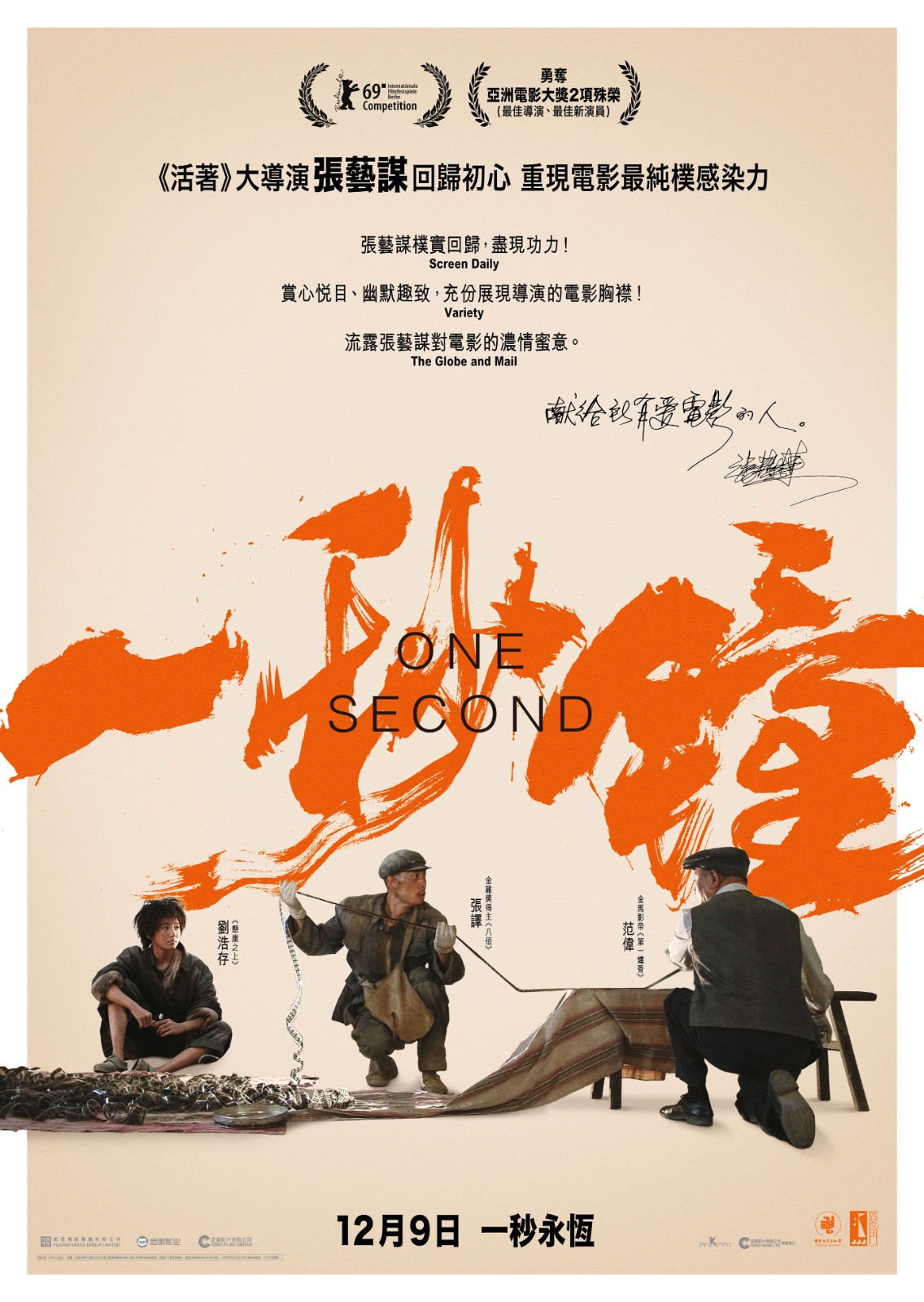 曾拍攝《英雄》、《十面埋伏》及《影》等經典電影的大導演張藝謀,為觀眾帶來了極度震撼的故事情節、武打場面及壯闊景象。今年張藝謀回歸初心,重拾寫實題材拍攝新片《一秒鐘》,電影由雙影帝張譯、范偉及「新謀女郎」劉浩存主演,是一部以「電影為題材」的電影。張藝謀一向善於發掘新女演員,經他發掘的女主角粒粒皆星,包括鞏俐、章子怡及周冬雨。21歲的劉浩存在張藝謀的指導下,首次演出電影,即以出色的演技贏得今屆亞洲電影大獎「最佳新演員」獎項,而張藝謀亦憑電影奪得「最佳導演」殊榮。