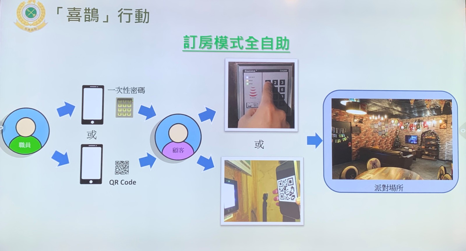 海關版權及商標跨境調查組指揮官馮衛正表示,涉案的卡拉ok機每部載有4萬至6.5萬首懷疑侵權歌曲,售價由2000元至1.3萬元不等,而涉案的派對房間 以社交平台作宣傳,收費包括使用卡拉ok機和遊戲機,相信為逃避執法人員,廣告上地址被隱藏,顧客要繳付全部費用才會知道詳細地址,預約房間以「全自助式」,由預如約到繳費直至進入派對房間,均透過即時通訊軟件與負責人聯絡,顧客會到光顧當日才會被通知房門密碼和二維碼,負責人或職員則從未露面。