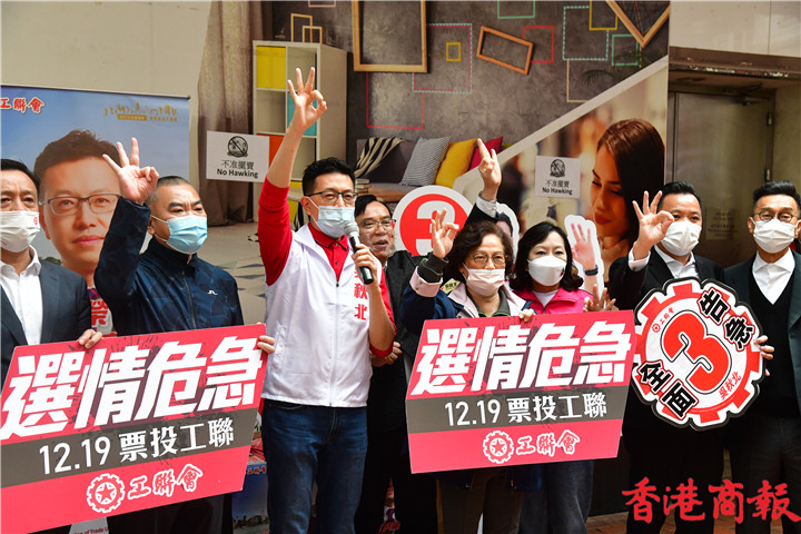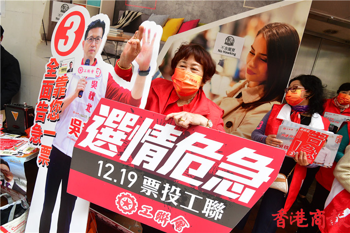 19日上午8時30分,第七屆立法會選舉正式開始投票,工聯會會長吳秋北今早在北角拉票。