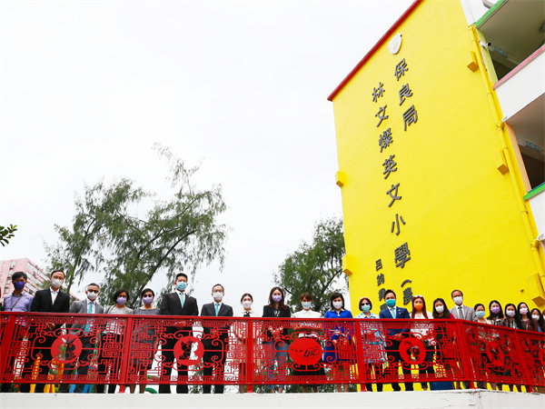圖說:李何芷韻與董事局成員參觀保良局林文燦英文小學交流辦學理念