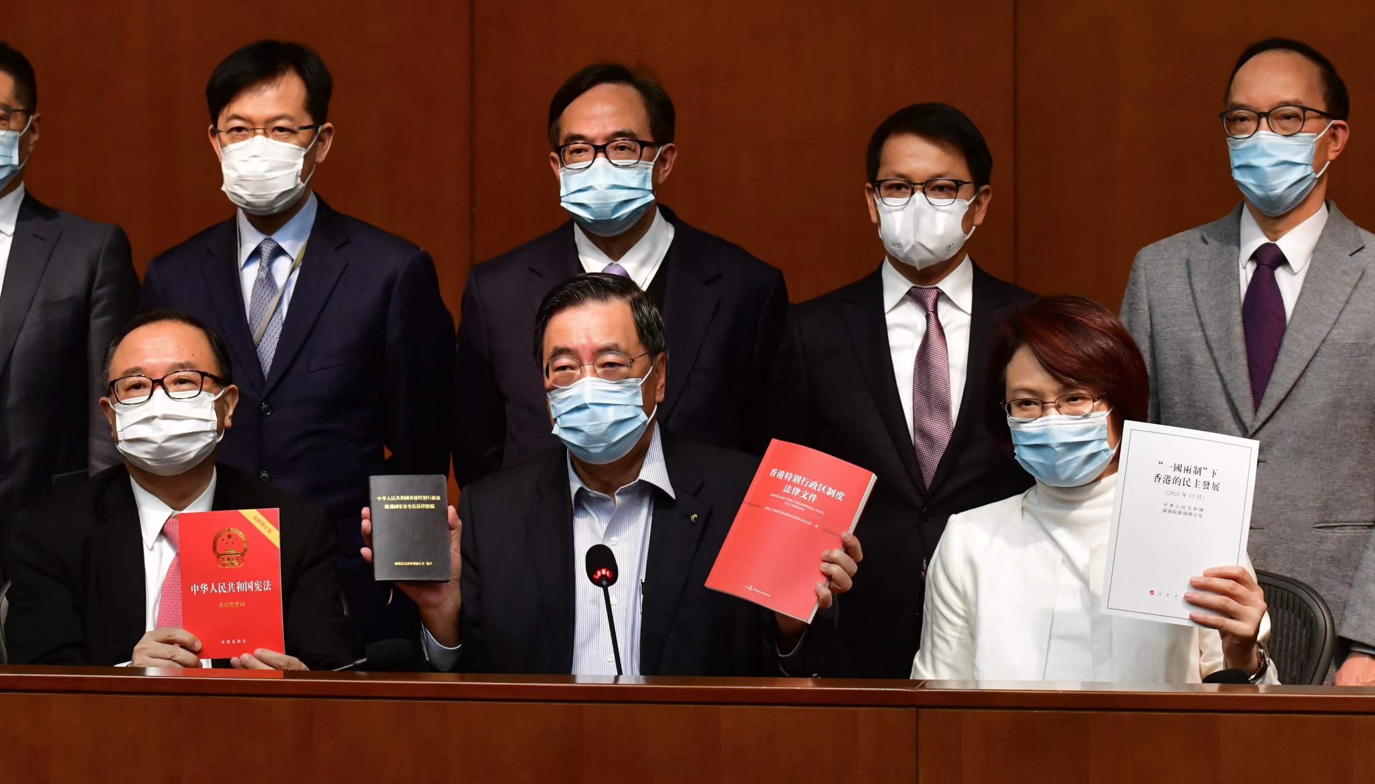 梁君彥指出,夏寶龍向每人送出一份「禮物」,即四本書,分別是《中華人民共和國憲法》、《中華人民共和國香港特別行政區維護國家安全法法律匯編》、《香港特別行政區制度法律文件》、《「一國兩制」下香港的民主發展》白皮書。