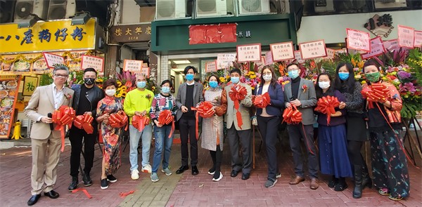 創辦人唐慧(左七)、黃偉雄(左六)與一眾嘉賓為新店開業剪綵。