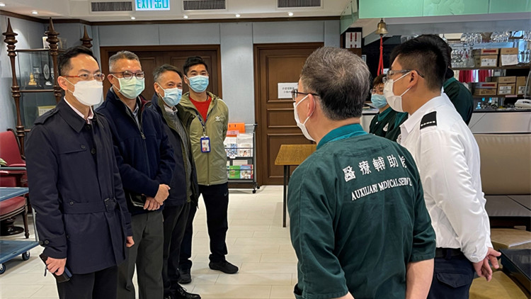 醫療輔助隊總監林文健今日(2日)到位於何文田的醫療輔助隊總部探訪當值隊員,並向他們拜年,感謝他們在佳節期間仍堅持參與抗疫工作。