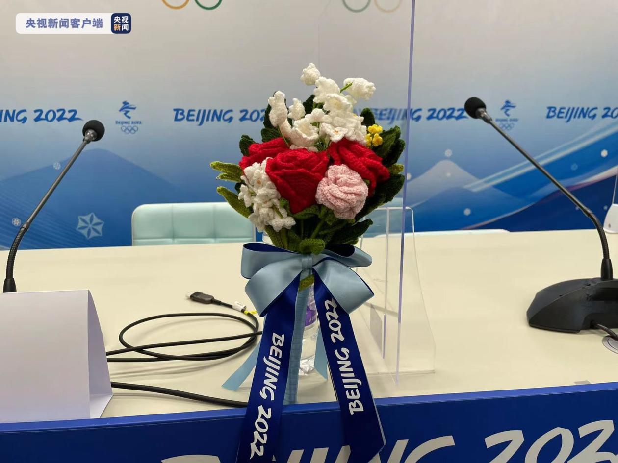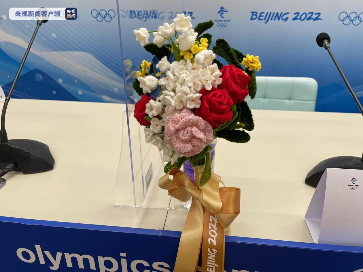 而北京冬奧會的頒獎花束採用中國的非物質文化遺產——絨線編結工藝而成,既體現了北京冬奧可持續的辦賽理念,也寓意著溫暖祥和。本屆冬奧會的花束還可永久保存,是永久不凋謝的冬奧之花。(圖源央視)