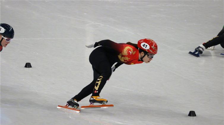 另外,2003年出生小將張楚桐在第五組比賽,同組對手包括了加拿大名將布廷、韓國的李有彬。比賽來到最後一圈時,布廷不慎滑倒摔出,最後李有彬和美國的比尼反超拿到前兩名,而張楚桐刀尖卡到冰面,第三個撞線無緣直接晉級,不过最终她仍以4个第三名最好成绩成功晋级搭上了1/4决赛。(圖為曲春雨,圖源人民日報)