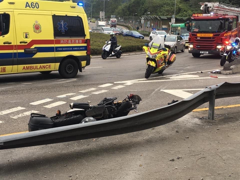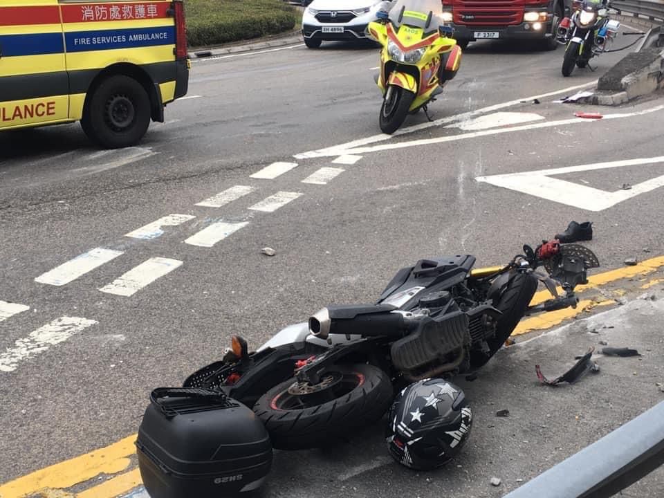 今日(10日)早上8時許,一輛16噸中型密斗貨車沿新西貢公路往西貢市方向行駛,當駛至蠔涌迴旋處落斜時,懷疑失控與一輛電單車相撞,貨車全車翻側,橫亙路中,電單車司機則閃避不及,撞向路旁鐵欄,頭盔飛脫受傷倒地,昏迷不醒。
