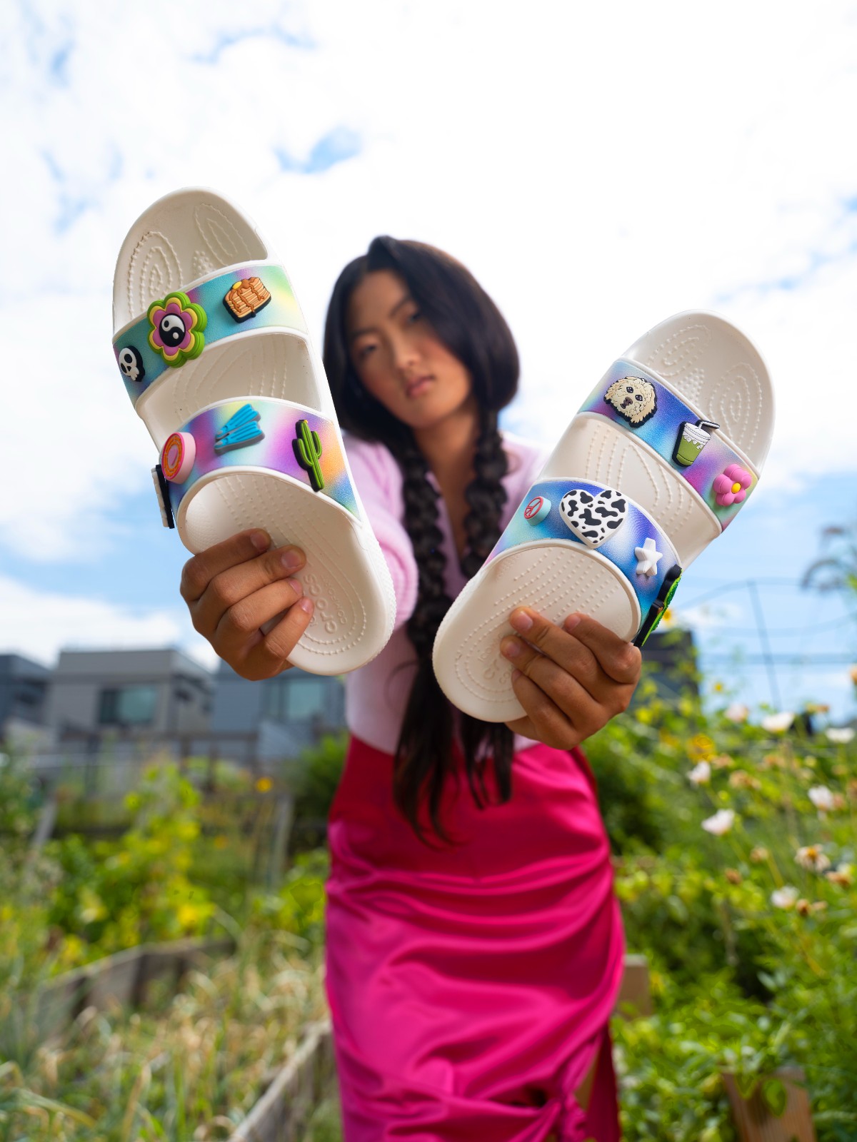 去年開始,時裝界流行一種既復古又具未來感的迷幻風格「Y2K」,「Y2K」是千禧年的縮寫,即是重新興起上世紀90年代末至2000年的穿搭風格。不少時尚人士重拾當時的潮流元素,如低腰牛仔褲、短版上衣、腋下包、毛衣背心、串珠飾品等,不少單品用上鮮明色系,色彩感極強烈。Crocs在今年第一季帶來用色大膽的Solarized系列,以Y2K的懷舊美學和未來數碼世界中取得數碼配色的創作靈感,傳遞未來主義的美學風格,以豐富色彩引領整季的時尚元素。