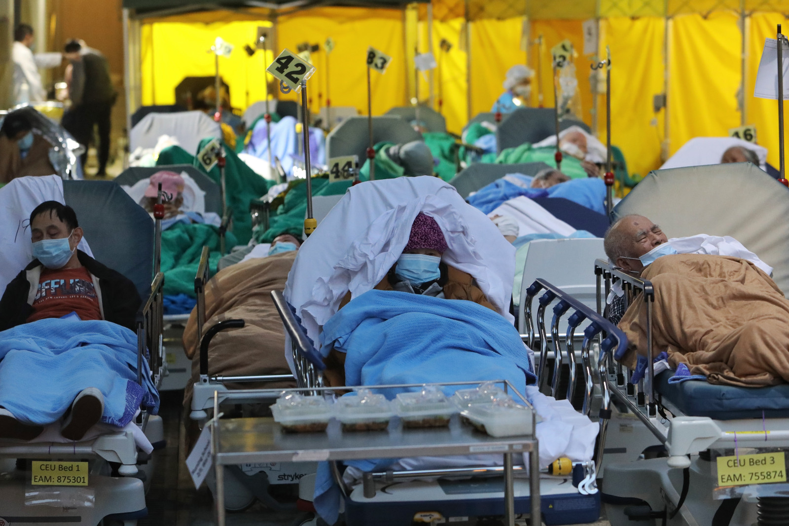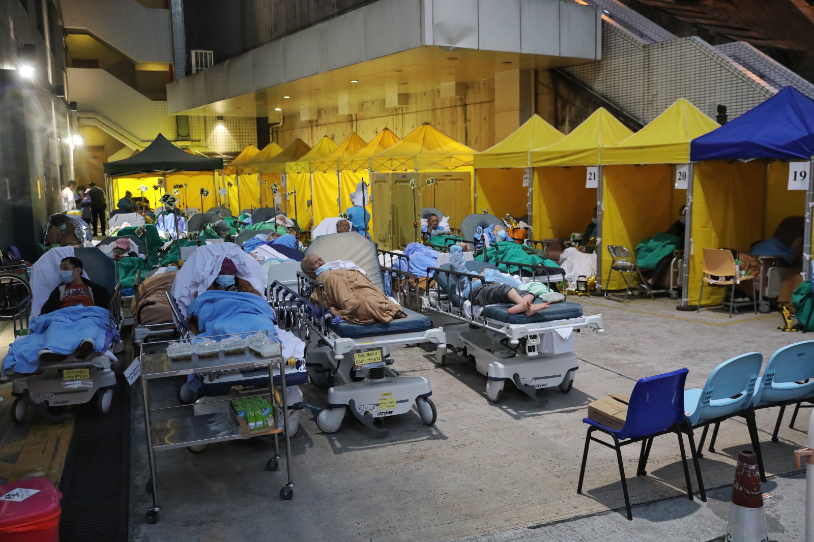2月16日,香港第五波疫情日趨嚴重,每日確診個案屢破新高,公營醫療系統超出負荷,其中伊利沙伯醫院、明愛醫院、聯合醫院及博愛醫院在戶外位置設置多個帳篷及病床,供大批染疫病人等候。