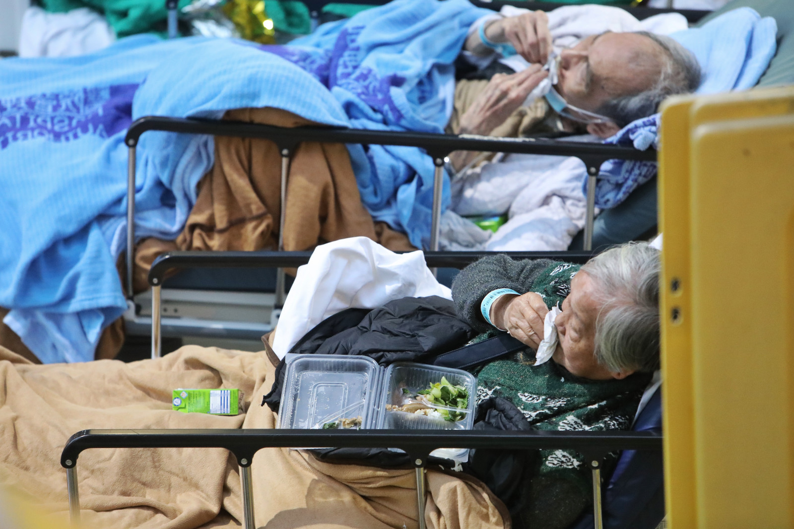 由於香港近日氣溫下降,部分等候的市民獲發棉被保暖,亦有人需蓋上保暖鋁紙。