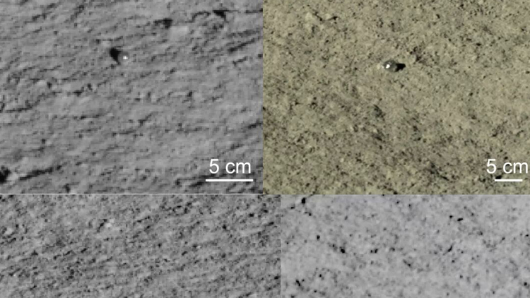 嫦娥四號月球任務的玉兔2號月球車發現的玻璃球(圖片來源:中國航天局)。