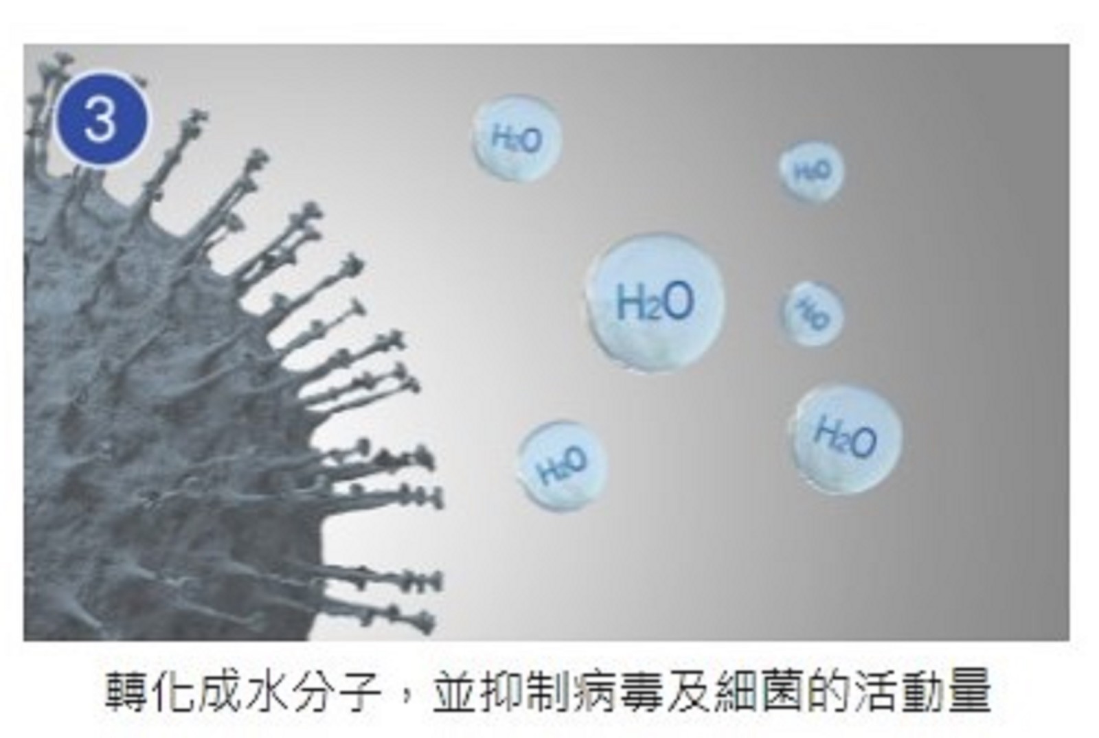 抽濕機中的氫氧離子能吸附病毒和細菌,轉化成水分子。