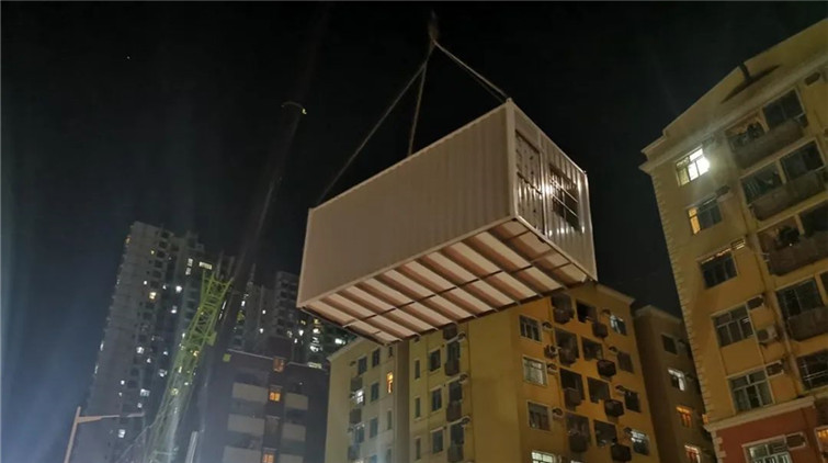 據了解,箱式板房的搭建確有其事,卻為緊急搭建的「志願者之家」。