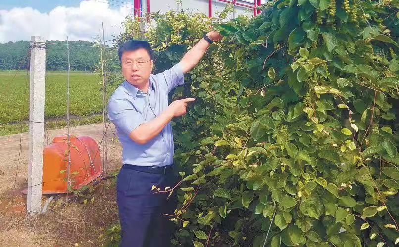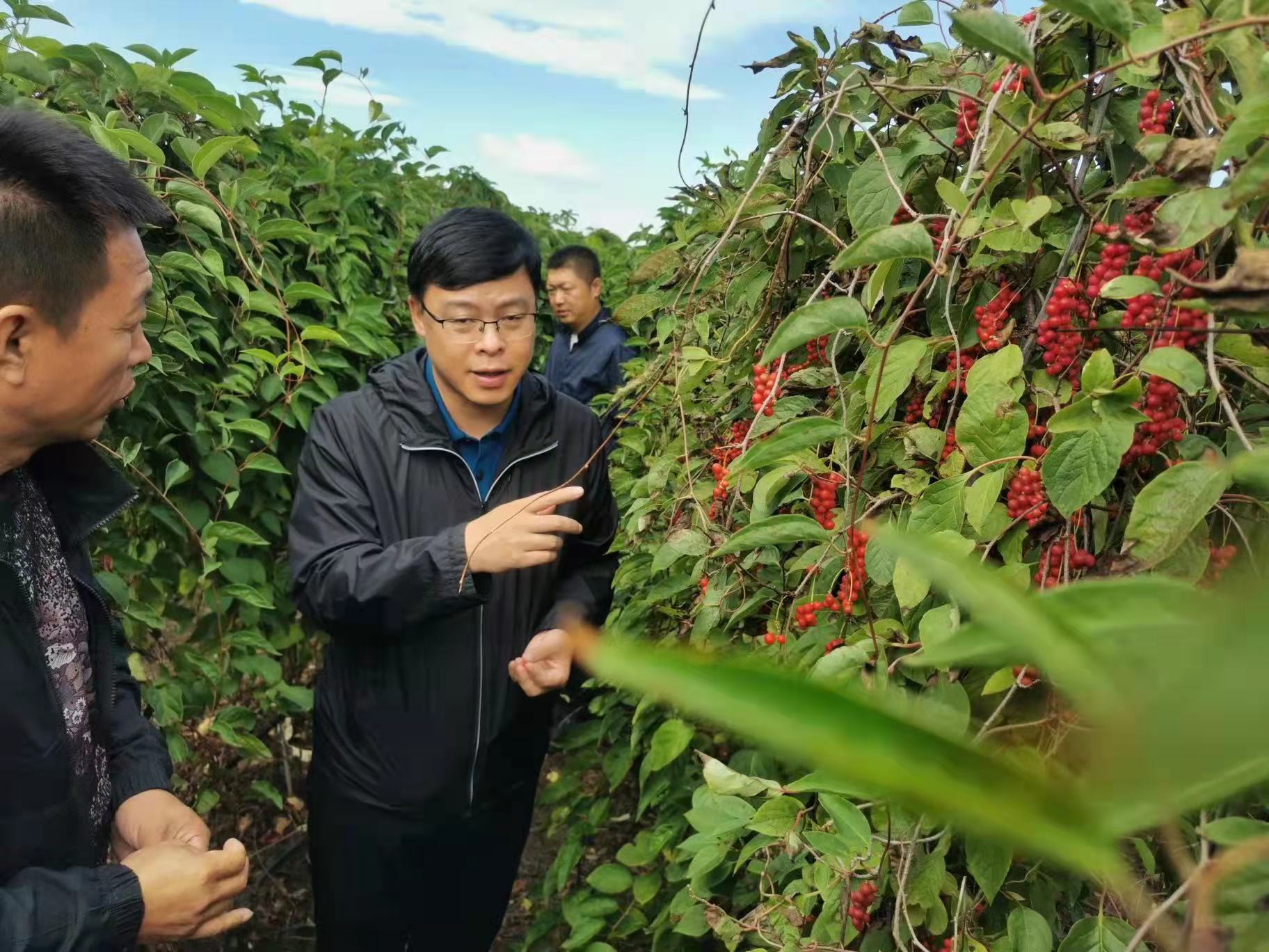 湯原縣委副書記、縣長國宏利在五味子種植基地調研。