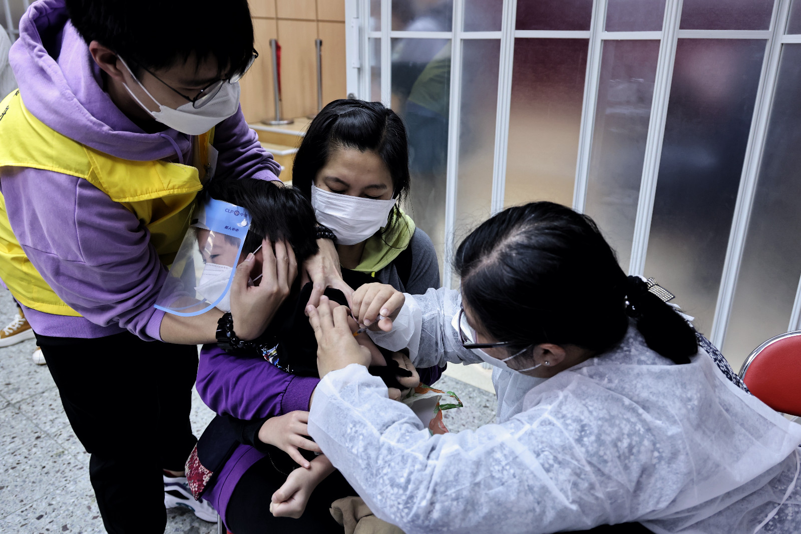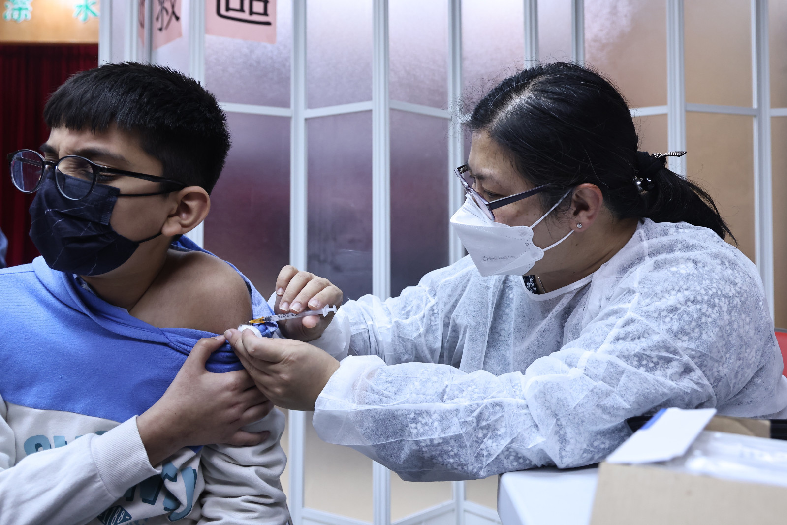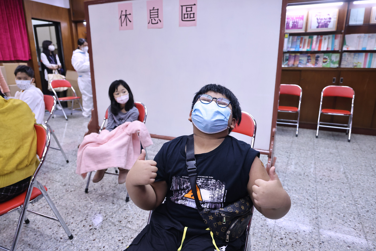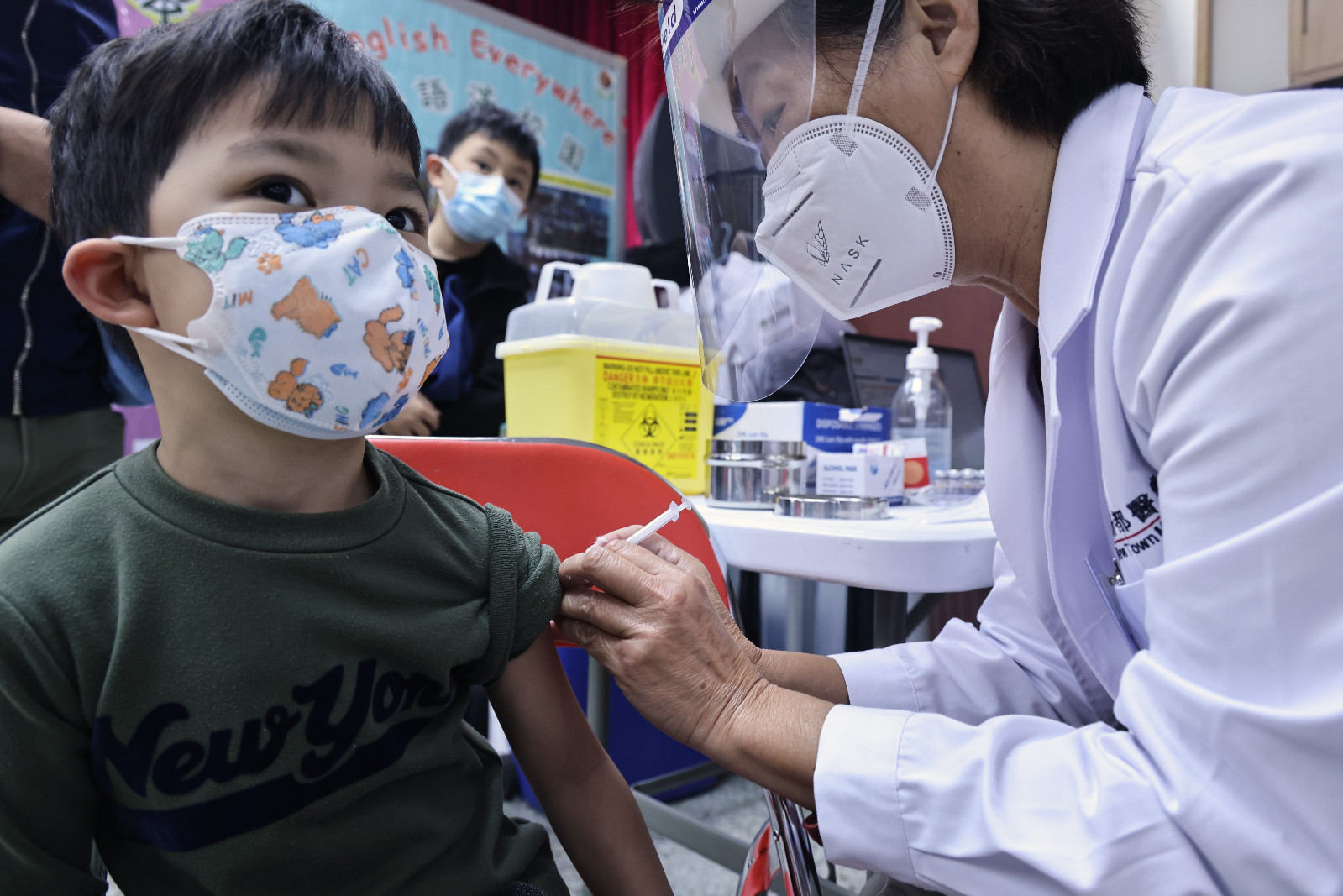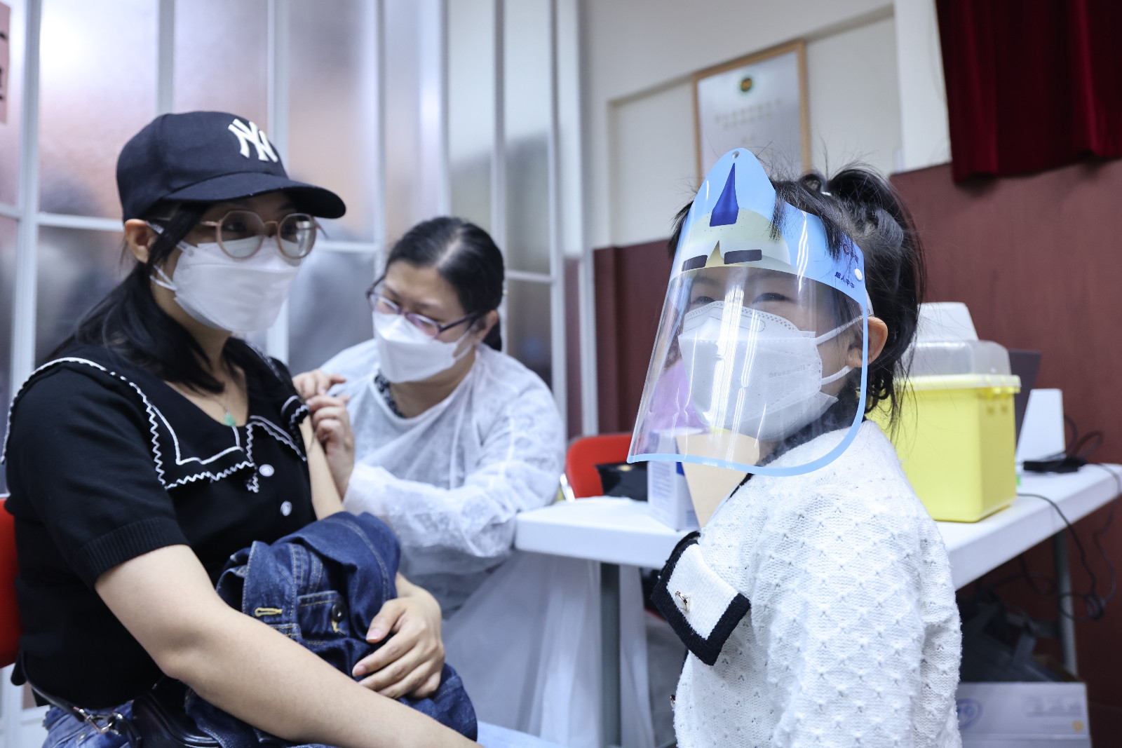 當日,不少家長早早帶着小朋友前往注射點接種疫苗。(圖源 中通社)