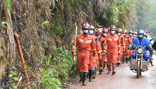 每天,在從救援指揮中心到事故地點約三公里長的蜿蜒崎嶇小路上,村民運輸救援物資的摩托車來回穿梭,風雨無阻。