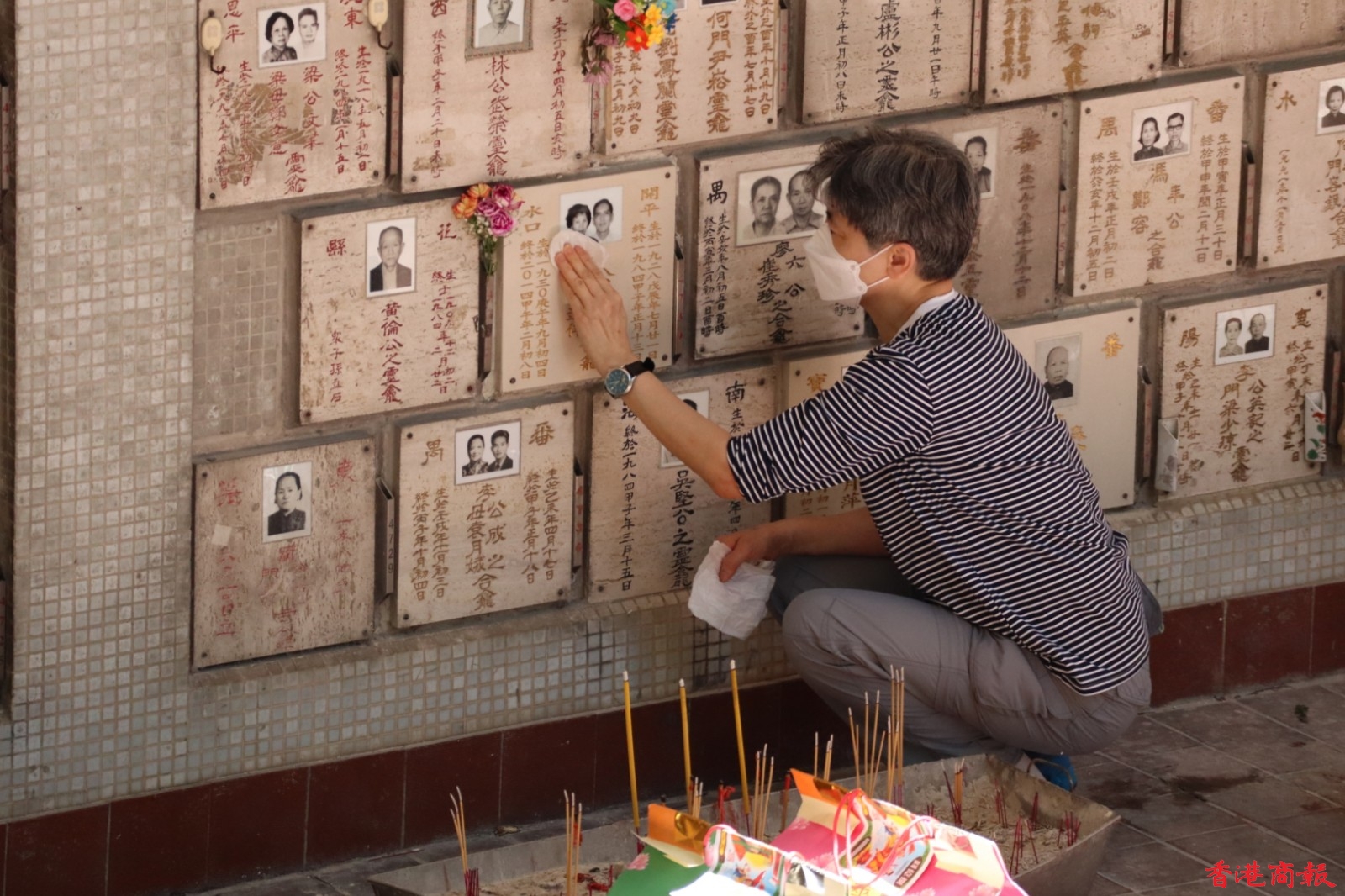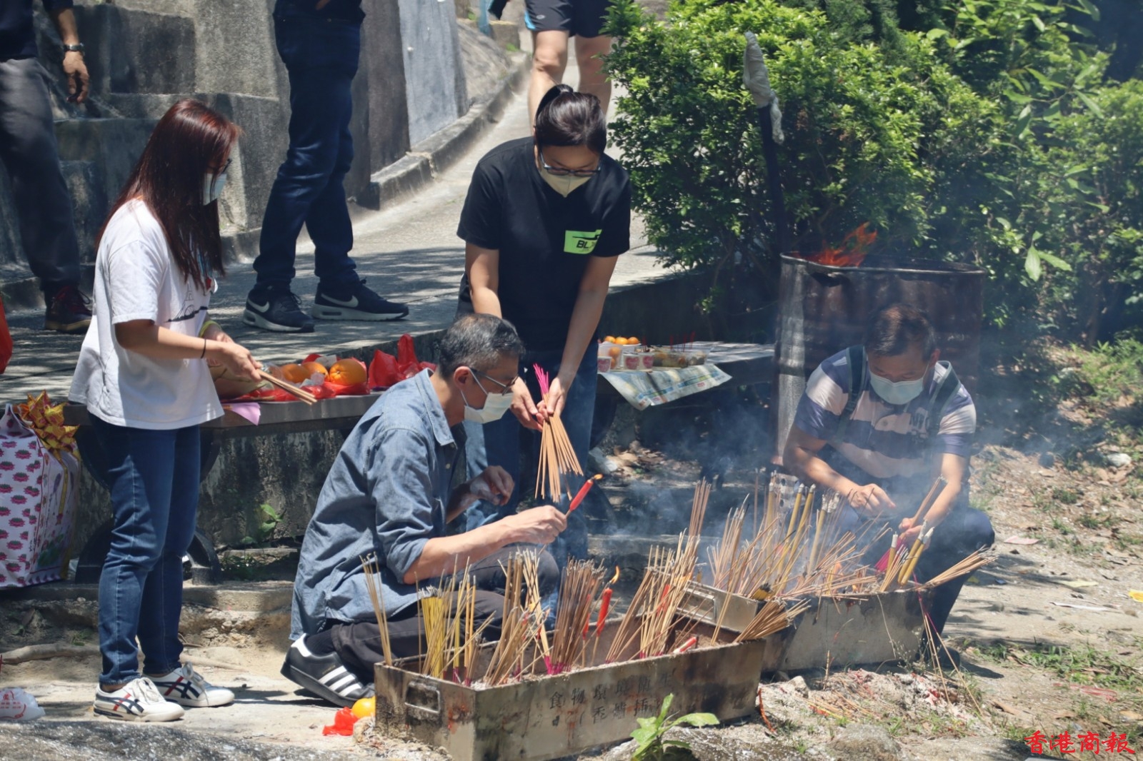 有市民說,以往連同一大班親友會抬一隻燒豬上山,拜祭後齊分食,現時疫情下一切簡化,拜祭祖先有一片孝心已足夠;還有完成掃墓的市民表示,今早目測到墳場拜祭的人數較以往少一半有多。(馮瀚文攝)