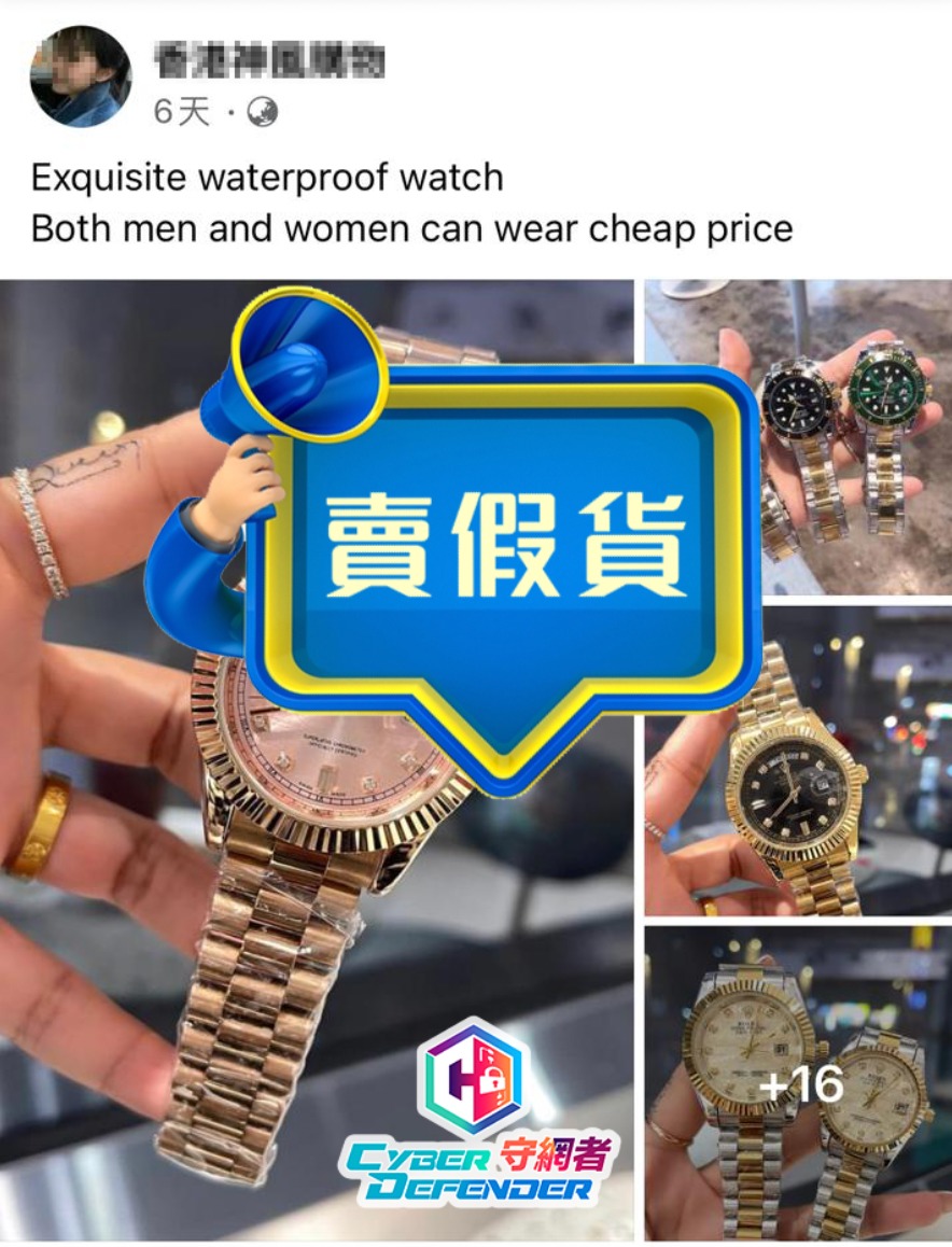 警方表示,近日接獲網民舉報,指有網購專頁和網站出售次貨和假貨。包括名牌手表、耳機、波鞋、口罩、名牌內衣等。該類專頁和網站會以撤離香港、囤貨太多、疫情關係、公司周年特惠、清貨等理由,以不合理低價銷售貨品。賣方指可以貨到才付款,但買家接到貨品後,發現經過多重包裝,拆開需時,令買家驗貨倍感困難,在未接觸到貨物時就轉賬給網站,但其後發現貨不對板,尋找線上客服要求退貨便會即時被封鎖,投訴無門。