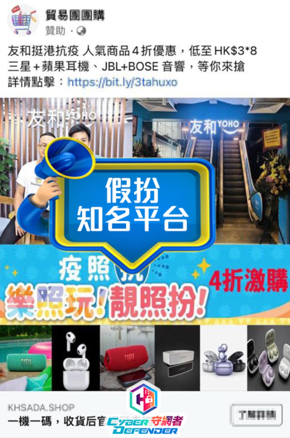「 CyberDefender 守網者 」: https://cyberdefender.hk/online_shopping_fraud,慎防被騙。(記者 區天海)