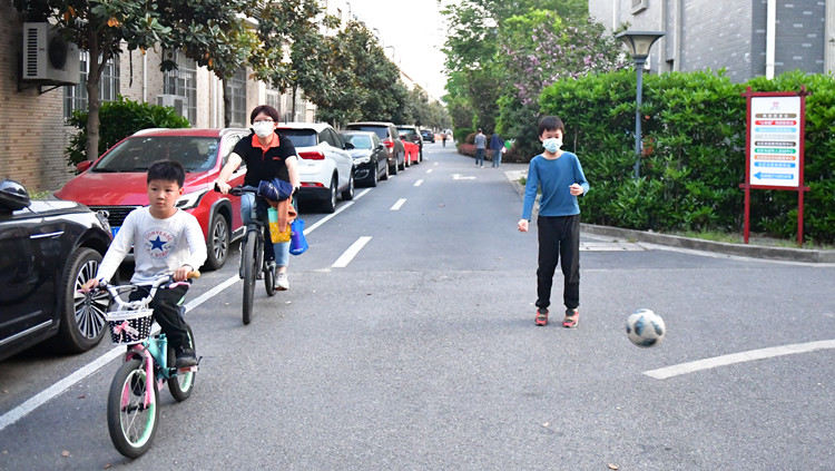 頂圖:4月11日,上海金山區楓涇鎮,居民在小區活動,中新社。