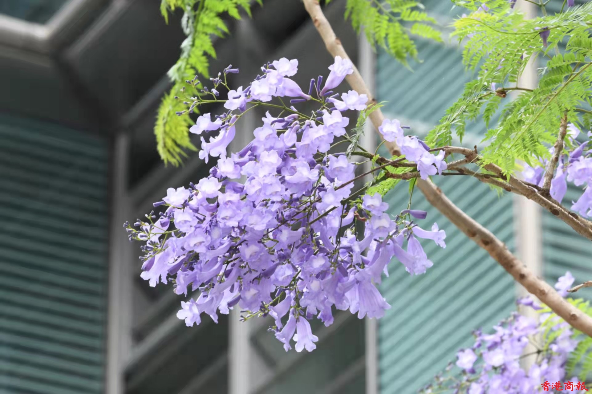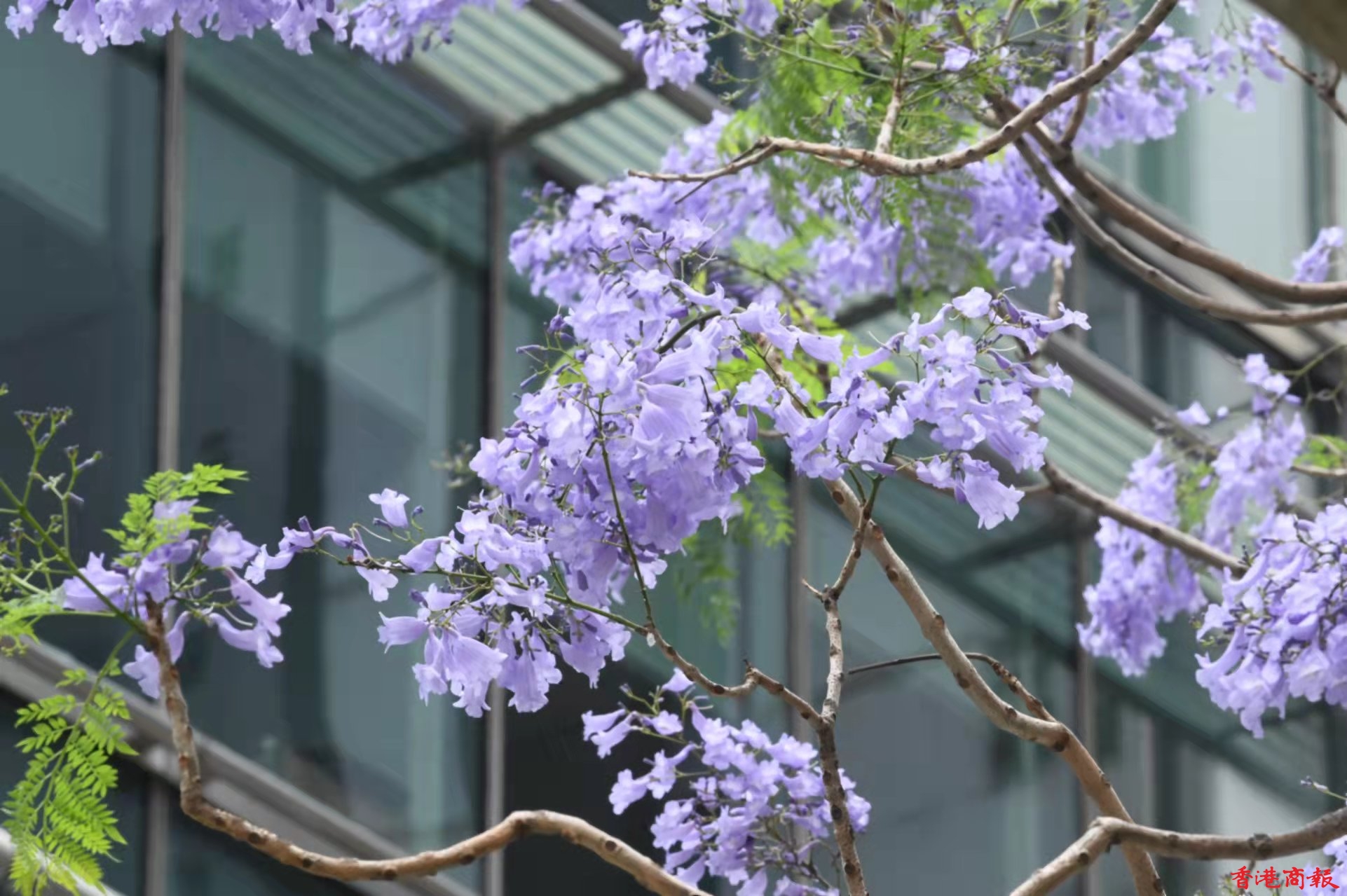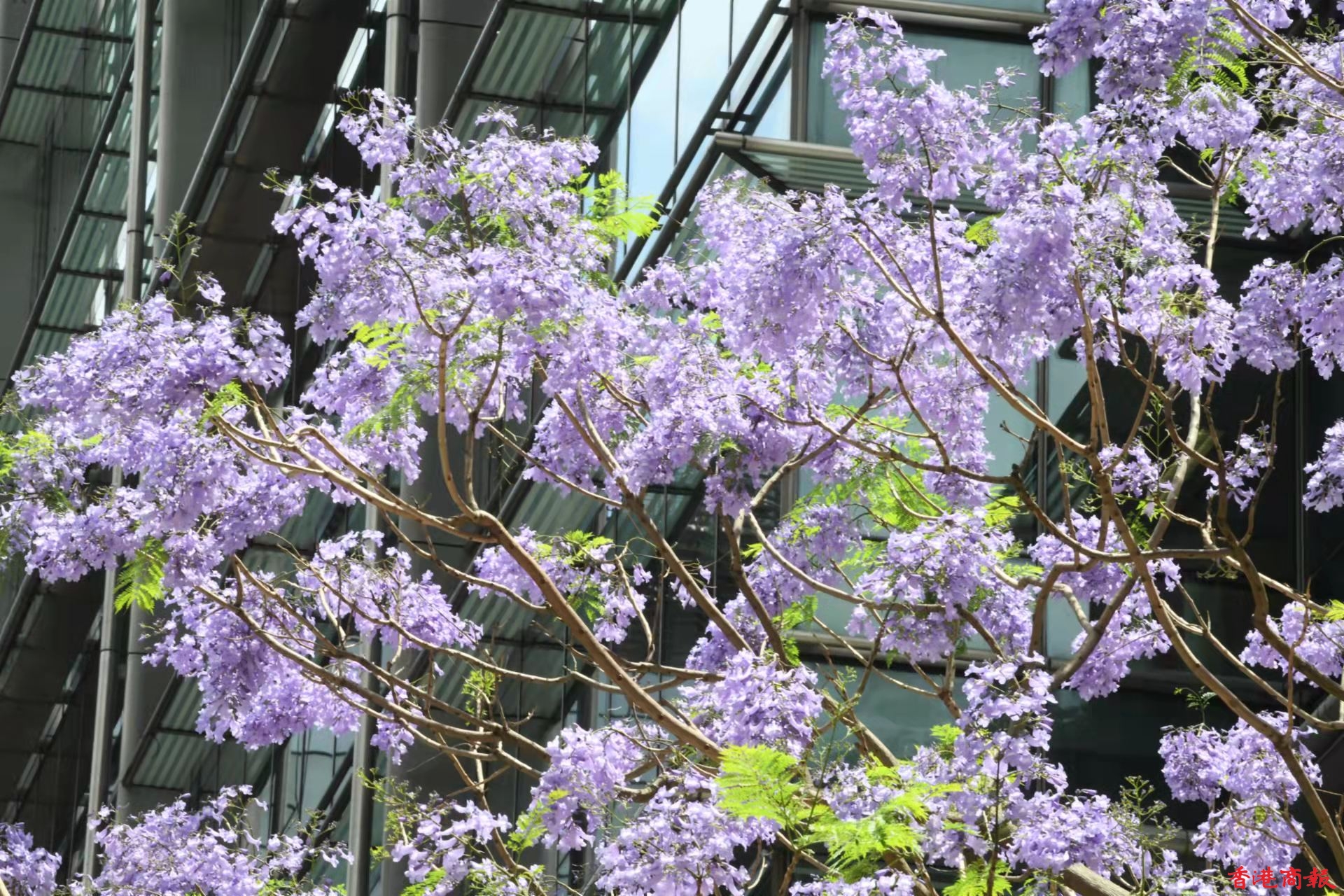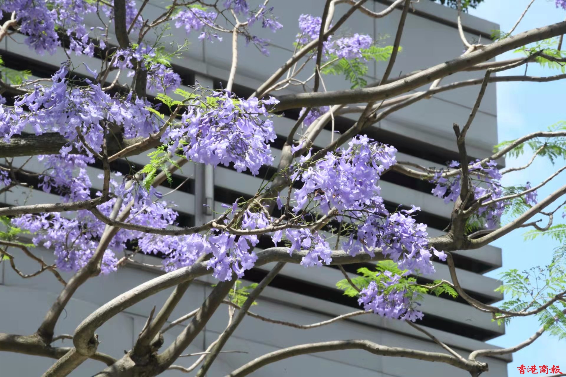櫻花過後,每年四至五月,正是藍花楹盛開的季節。藍花楹屬紫葳科植物,來自巴西,花呈長管喇叭狀,淡紫藍色的花冠,非常漂亮。香港有不少地方都找到它的蹤影,雖然棵數不多,不像澳洲或日本有藍花楹花大道,但香港的藍花楹同樣美麗。