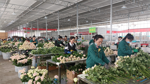 預冷、打刺、分揀、包裝……記者在蘭州新區農投集團花卉產業基地看到,一束束玫瑰經過上述工序後將發往全國各地以及韓國、日本等國家和地區。