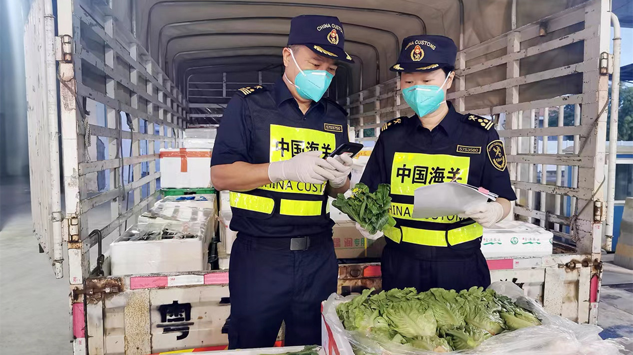 供港澳鮮活產品時效性強,出口業務全年無休,為此拱北海關關員們在「五一」假期堅守工作崗位,做好節日期間供港澳鮮活食品農產品的通關保障工作。「五一」期間,經拱北海關下轄的香洲海關監管的供港澳食品農產品,日均約有230噸。全年約有11萬噸各類食品農產品經香洲海關實施屬地監管後,經口岸海關監管發往澳門,其中蔬菜、水產品的供應分別占內地供澳市場約70%,水果佔比100%。