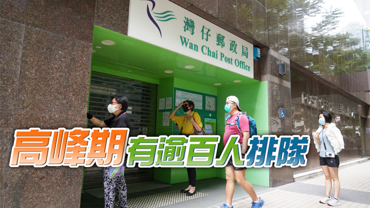 灣仔郵政局是其中一間指定郵局,今早未開門時人龍已排出郵局外,高峰期有逾百人排隊,有人帶備椅子坐著排隊;上午9時半開門後,職員隨即向排隊人士派發即日籌,不足30分鐘已滿額。排頭位的市民指自己清晨已到場等候;有排隊的市民批評政府安排「落後」,應盡快開放網上申報渠道。