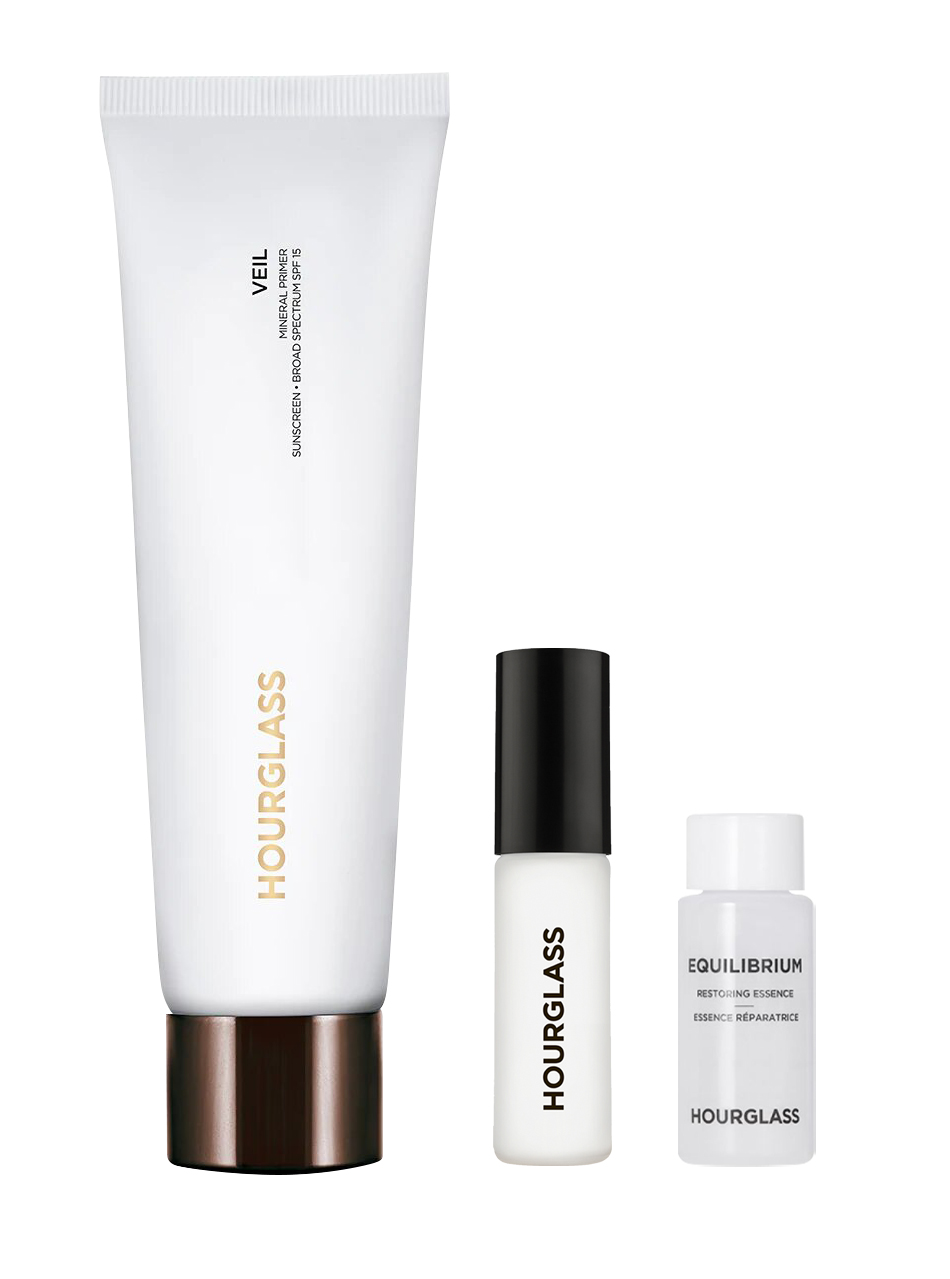 VEIL柔紗礦物妝前乳套裝,優惠價HK$490-$670(原價HK$593-$773),包括VEIL柔紗礦物妝前乳30ml/60ml 1支、VEIL柔紗礦物妝前乳試用裝3.6ml 1件及EQUILIBRIUM 平衡活肌精華水試用裝6.4ml 1件。