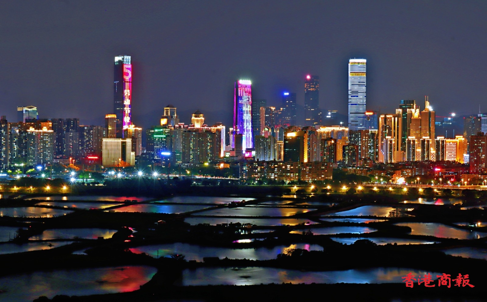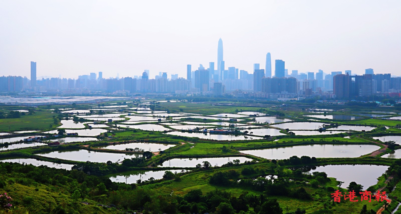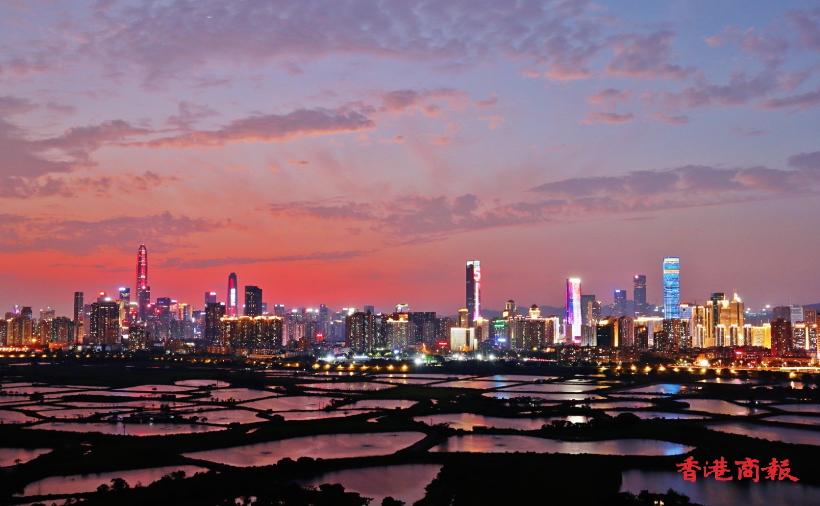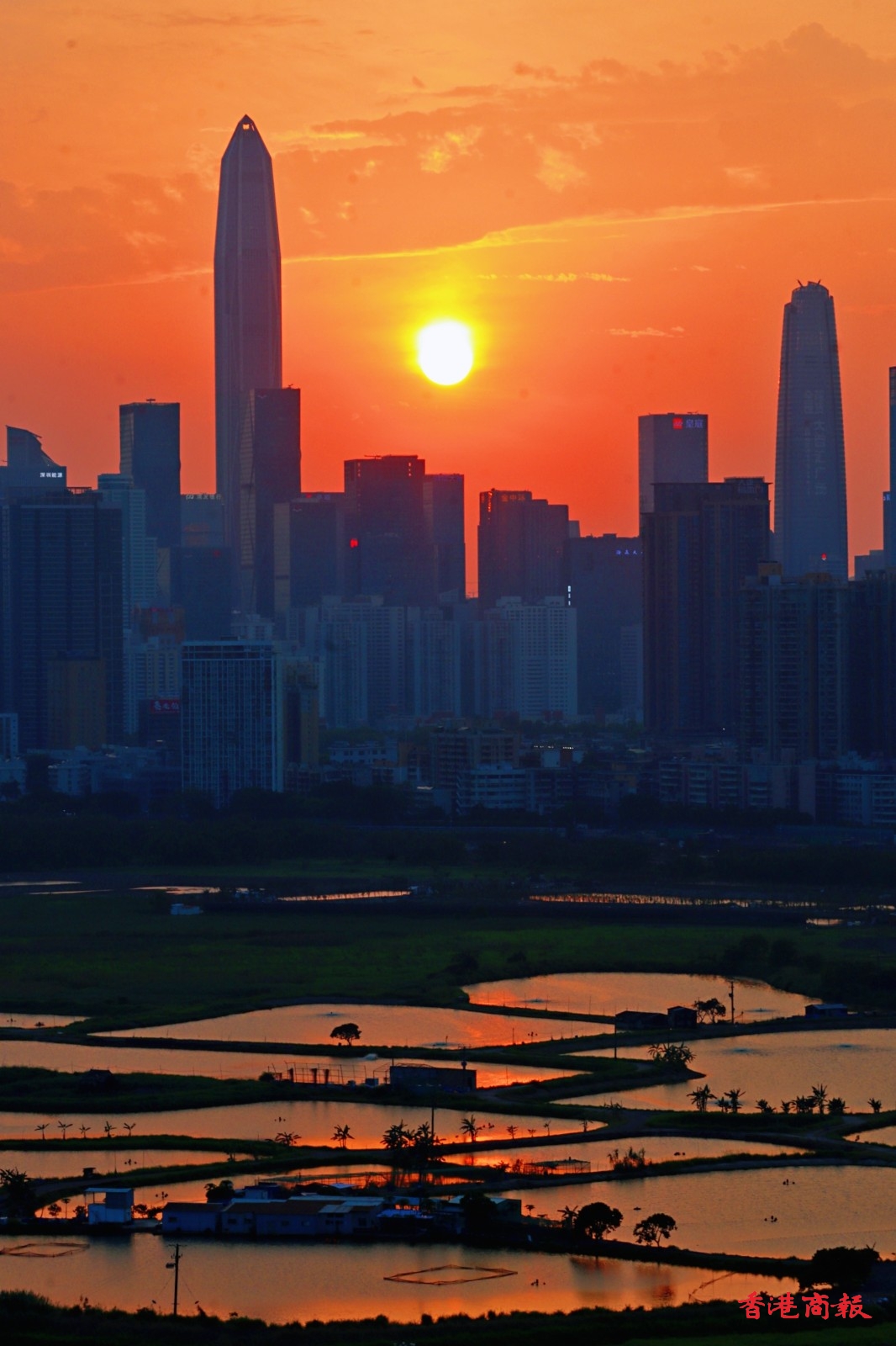 此外,在香港和深圳間的大片魚塘,每當日落黃昏時,魚塘的水面隨着時間的流逝,顏色由蔚藍,變成金黃,再轉化成幻紫, 尤如天神的調色盤,畫筆一揮,便繪出了醉人的落霞,配以深圳五光十色的現代商廈作背景,創造了攝影的好題材,也令行山人士着迷。(馮瀚文 攝)