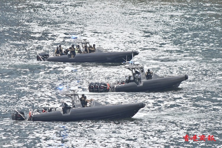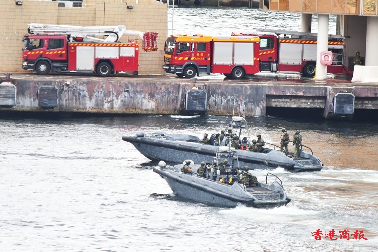 另外,警務處聯同消防處在今日下午約2時起,出動多艘水警輪、快艇、消防輪等在維港及尖沙咀中港城一帶進行海上演習,直至傍晚行動仍未完結。